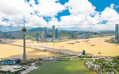 站在横琴总部大厦33层,横琴岛的全貌几乎尽收眼底,河对岸澳门万豪酒店和永利皇宫酒店近在眼前。不亲自站在这里,真的无法想象横琴岛与澳门如此之近!连接一河之隔的澳门与横琴岛的莲花大桥就在不远处静静守候着;再往右看,容纳1万人的澳门大学横琴校区在河边的朝晖里熠熠生辉。环顾四周,一座现代化的、充满勃勃生机的新横琴就在眼前。