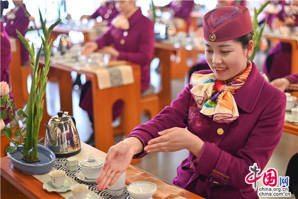 中国网1月22日讯 1月21日,来自重庆客运段动车一队的24名“动妹”在培训学校内学习插花、茶艺。2021年春运即将来临,成渝城际铁路迎来提质运营后首个春运,对列车服务也提出了更高要求。为此重庆客运段动车一队把提升职业技能和个人综合素质作为两条主线来抓,利用休息时间,组织成渝城际铁路班组骨干开展了茶艺、插花等体验式培训,增强“动妹”们的内在素养,从而推动服务提质。