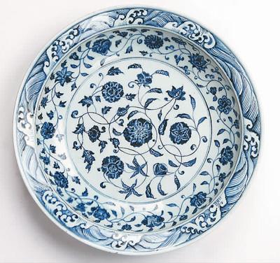 明青花缠枝莲纹折沿盘 中国航海博物馆供图 |