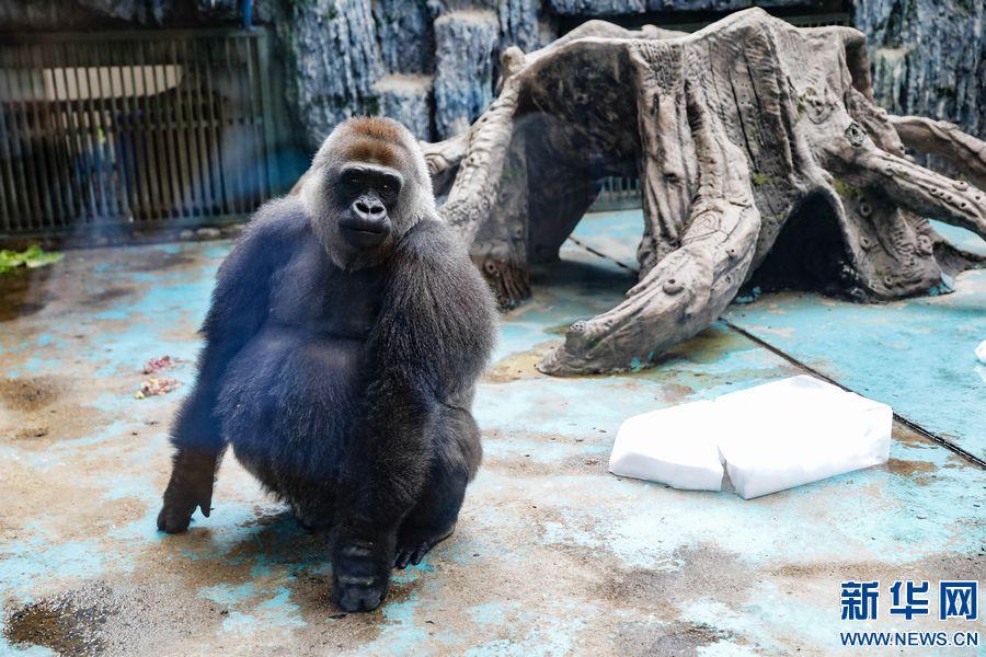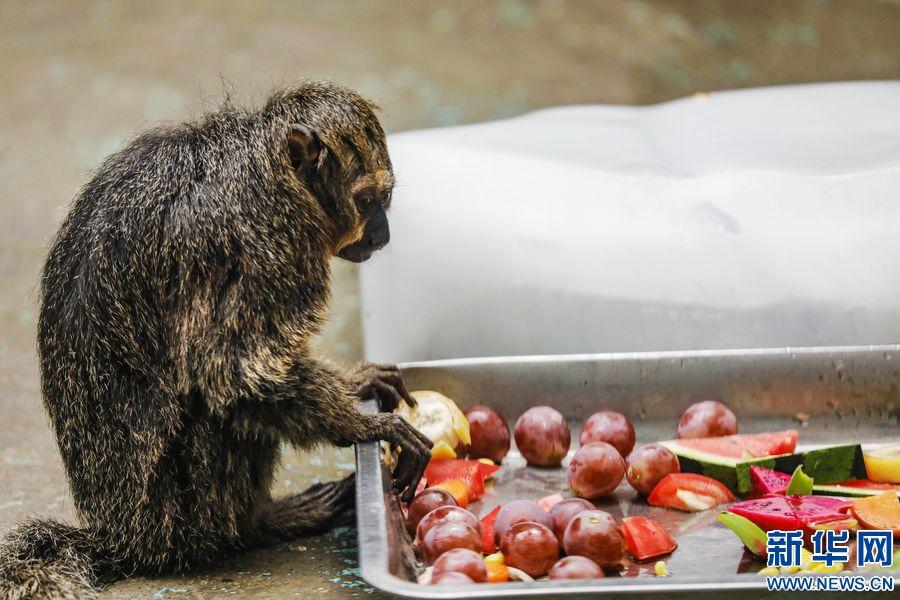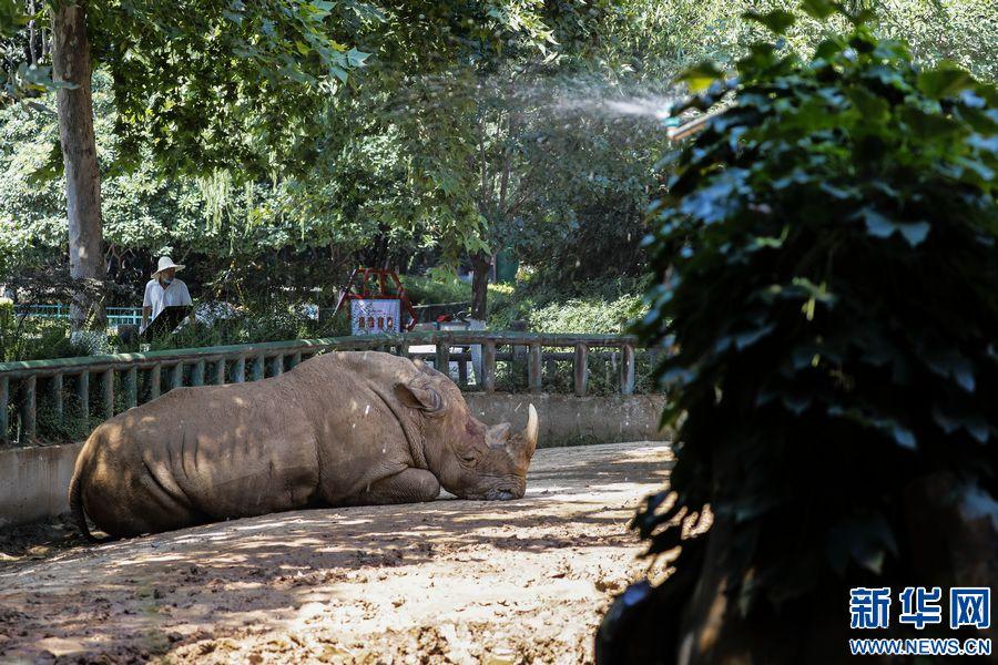 连日来,河南省郑州市持续高温。郑州市动物园通过人工喷淋、增设空调、提供冰块和水果等多种方式,帮助这些“萌宠”消暑降温、清凉度夏。新华网发 (何五昌 摄)