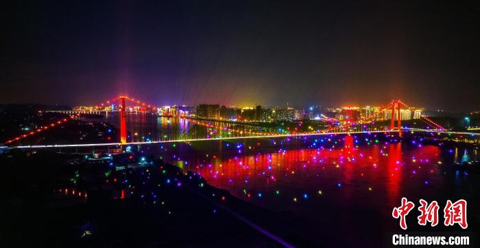 宜昌举行长江大桥光影秀致敬建设者 付蓓蓓 摄