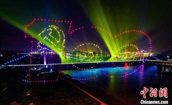 “秀美宜昌”灯光秀无人机表演 付蓓蓓 摄