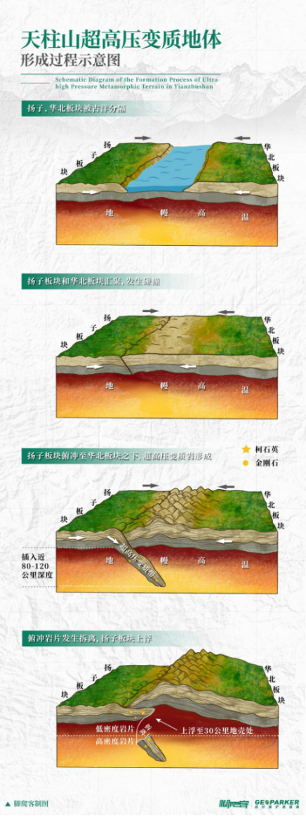 在超高压、高温的环境中,地表的岩石经历了高温和超高压的锻造,成为超高压变质岩。同时,金刚石、柯石英等矿物,在地幔的高温、高压环境中形成,被榴辉岩层层包裹,成为超高压变质岩的一部分,将“地心世界”的秘密藏于其中,让科研人员能够窥见地球深处的变化。
