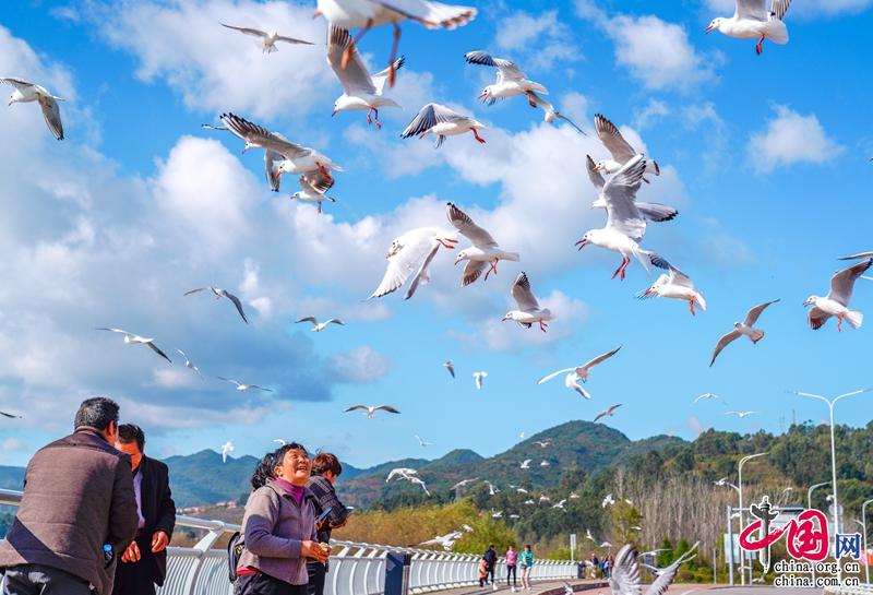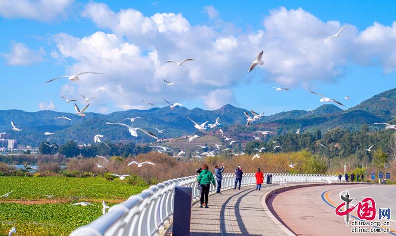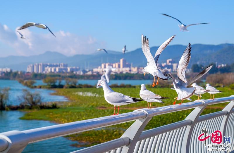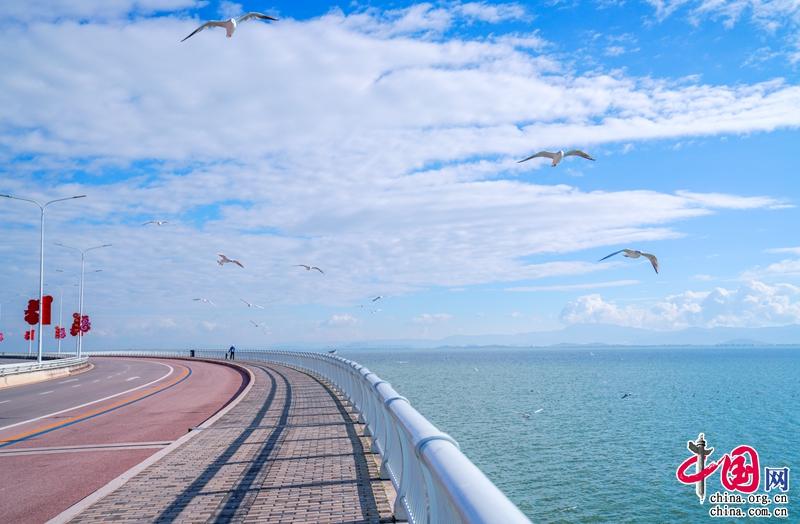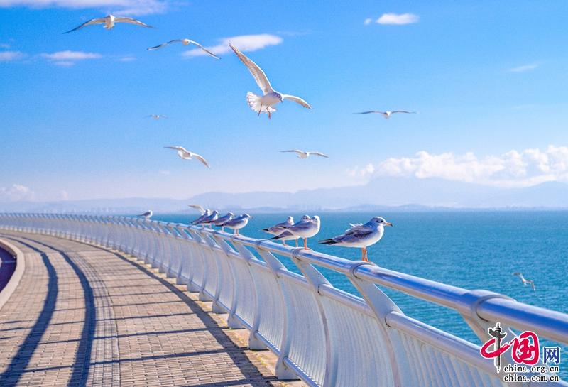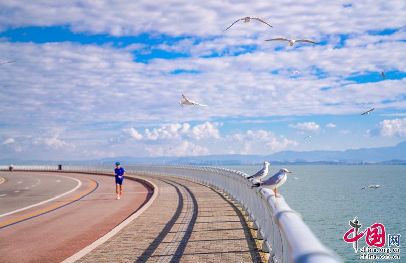 这一季,最美环湖公路也美出了新高度,湛蓝的天空下,滇池水在阳光下闪闪发光,每年都会准时赴约的小天使——海鸥又回来啦。