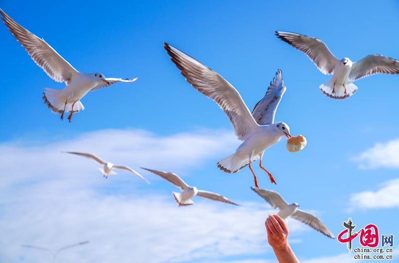 这几年,生态环境越来越好,也吸引了海鸥小精灵的到来,最美环湖公路也成了新的观鸥打卡点。(冯静 吴艳涛/文 宋光旭/图)
