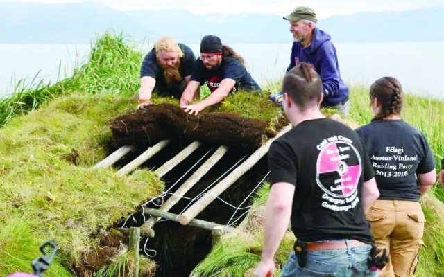 冰岛的草皮屋,代表着当地人因地制宜、与自然和谐共处的智慧。草皮屋的历史最早可以追溯到公元9世纪,维京人来到这里定居的时候。来自斯堪的纳维亚半岛的维京人,习惯用巨大的木头建造长屋,长屋适合多个家庭居住在一起,多数活动都在屋内进行,便于抵御风寒,也便于抵御野兽和敌人的入侵。但初来乍到的维京人发现冰岛遍地都是火山岩和苔原,当地木材奇缺,树木生长也十分缓慢,能用的多是灌木,以及少量从大陆运来的进口木材或从海上漂来的西伯利亚树木。缺少木材,盖房子和取暖都困难,一到冬天冻死人是常有的事。特别是遇到飓风和暴雪,好不容易盖起来的房子很容易倒塌。一旦地震,更是会造成严重伤害。但地上的草皮,再大的风也刮不走。因此,耐用性强、可再生、易广泛普及的草皮就成为主要建材。草皮建造的长屋开始成为冰岛房屋的主流。