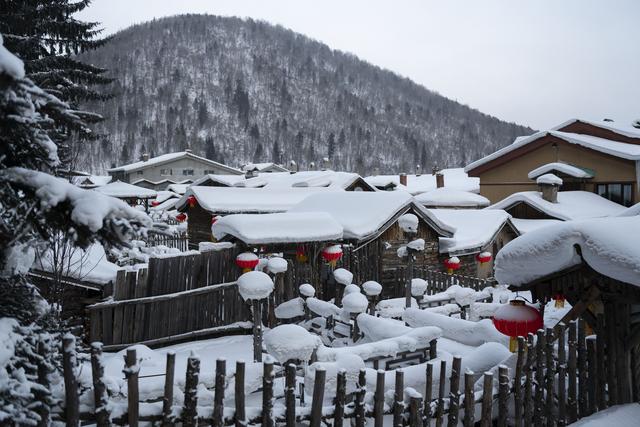 “雪蘑菇”“雪棉被”,皑皑白雪配上红灯笼,仿佛置身于童话世界,这就是中国雪乡。
