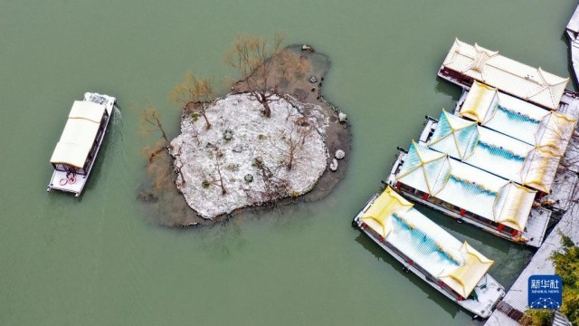 这是1月15日拍摄的江苏扬州瘦西湖雪景(无人机照片)。
