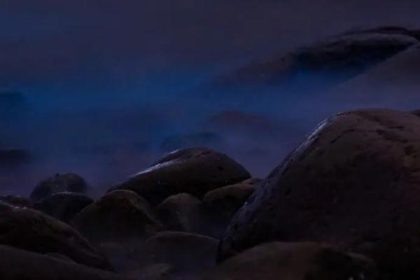 夜晚幽蓝的海面神秘浪漫,浪花拍打岸边,迸发出晶莹的蓝色光束;静态镜头下,更宛如星河落入凡间,梦幻又迷人。