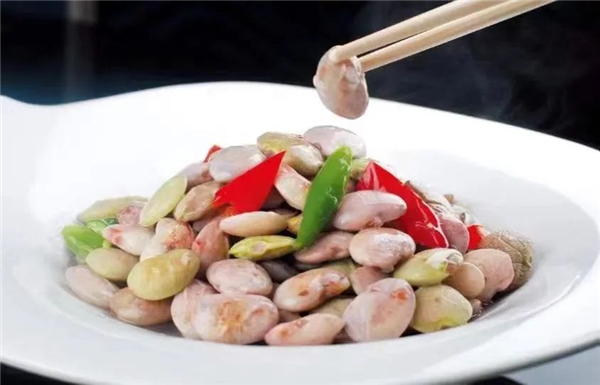 辣椒清炒新鲜的花豆,或老花豆炖汤,佐以筒骨、排骨和羊肉等,还可加香菇与排骨、五花肉等卤烧。具有粉滑醇香、清甜可口的特点。喻相思常在、友谊长存。