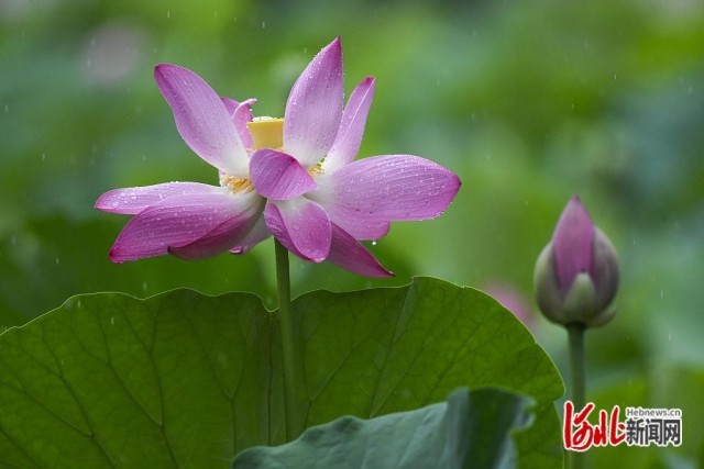 7月12日,河北多地迎来降雨天气,公园内的荷花在雨中别有一番风情。河北日报通讯员刘满仓 李明发摄