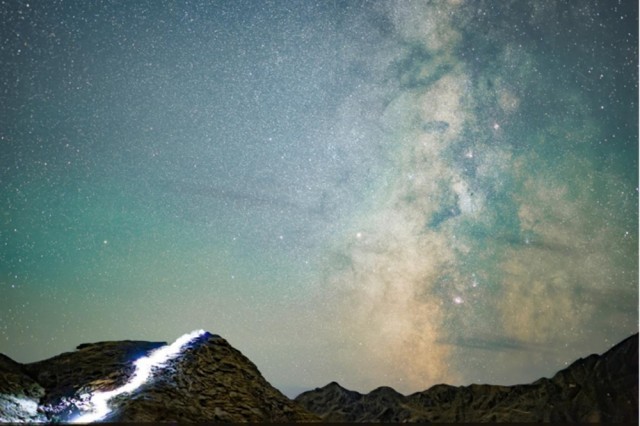 2023年7月16日,在新疆哈密巴里坤怪石山拍摄的壮美星空(王俊峰摄)
