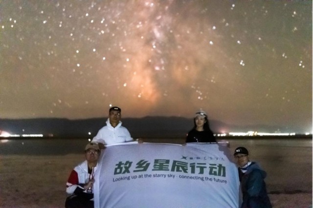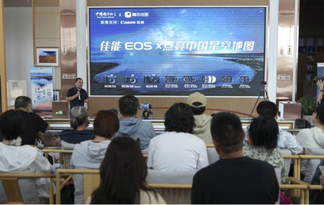 2023年7月17日,在新疆哈密巴里坤高家湖,中国图片集团王俊峰介绍“点亮中国星空地图”IP项目。(解立春 摄)
