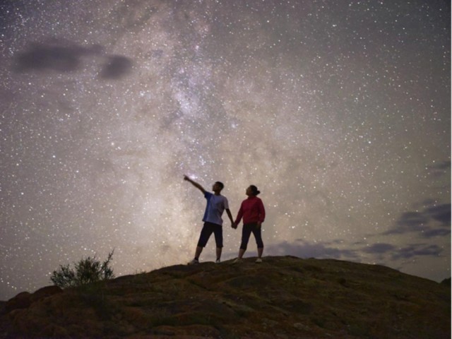 2023年7月16日,在新疆哈密巴里坤怪石山,摄影爱好者在拍摄记录星空(刘兵摄)