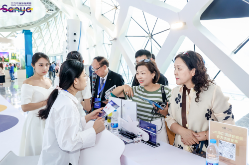 休博会嘉宾代表在“三亚馆”展台前与企业进行交流互动