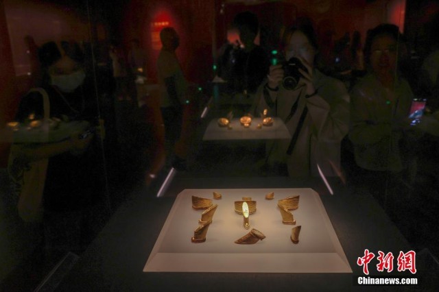 7月17日,江西南昌,民众在南昌汉代海昏侯国遗址国家考古遗址公园内的南昌汉代海昏侯国遗址博物馆参观展出的褭蹏金、麟趾金。海昏侯刘贺墓出土了478件、重达115公斤的黄金器物,是迄今中国汉墓考古发现黄金数量最多的一次。正值暑期,不少民众走进南昌汉代海昏侯国遗址国家考古遗址公园参观游览。
