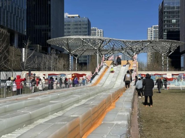 “同事告诉我楼下有个免费玩的冰滑梯,正好放松一下,解解压!”在中关村壹号园区上班的王女士告诉记者。