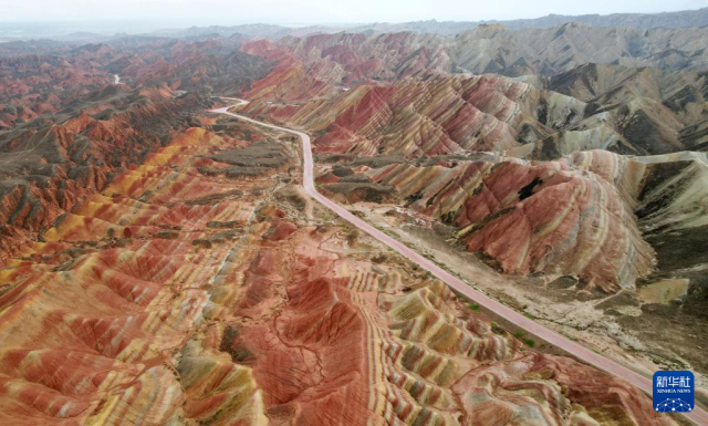 6月22日,甘肃省张掖市七彩丹霞景区迎来一场降雨,丹霞地貌经过雨水的滋润别具韵味。