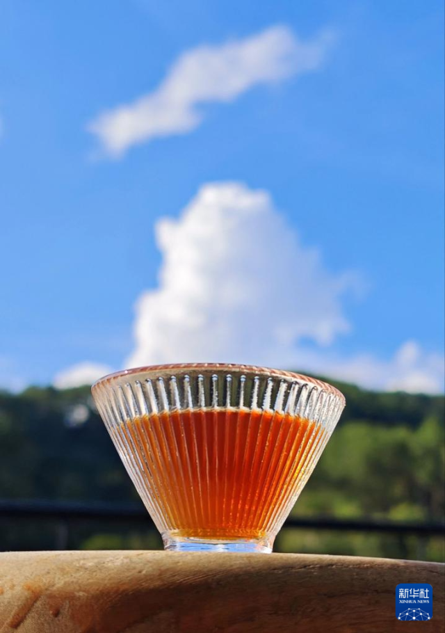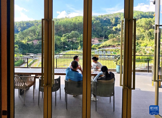 9月20日,游客在普洱市思茅区南屏镇南岛河村白沙坡小组的“美丽星村·有风咖谷”品尝咖啡。