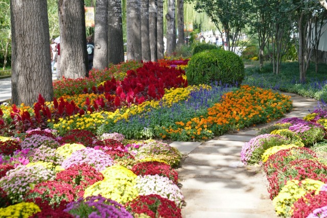 这里有着上万平方米如油画般的花海、花带,种植有月见草、百日菊、鼠尾草、蓝蓟、波斯菊、硫华菊、孔雀草等10余种草本花卉。其中百日菊不仅有耐干旱、花期长的特点,且颜色丰富艳丽,或红或黄或紫或橘,如同大自然的调色盘。9月中下旬至10月下旬是花海的最佳观赏期,游客可从藻园门进入,向北观赏、拍照打卡。