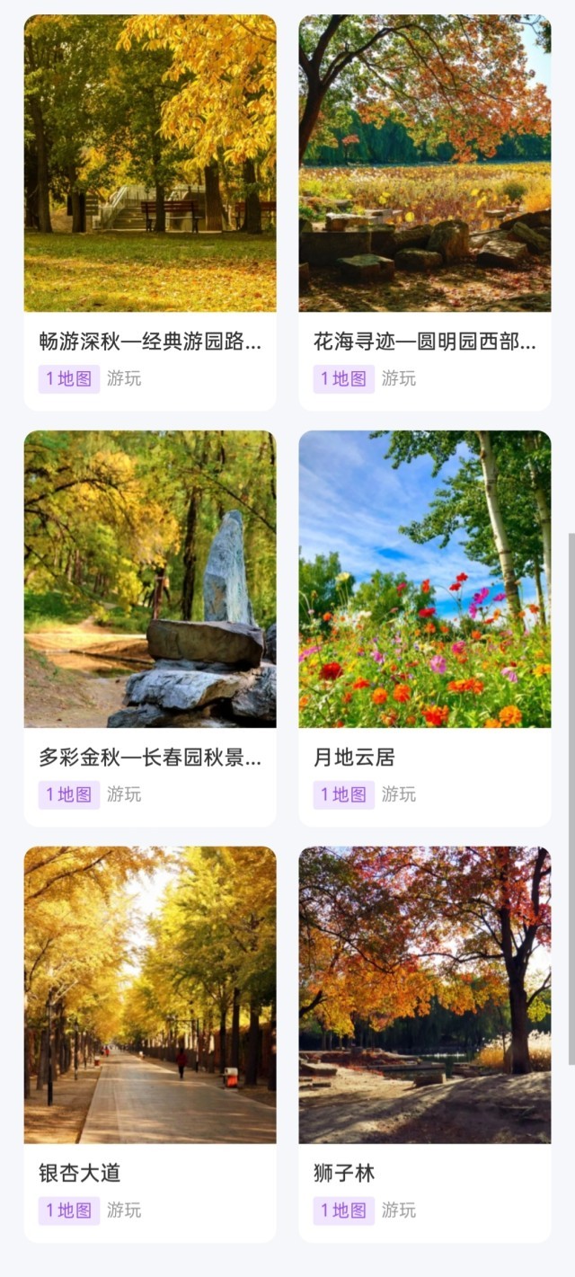 为丰富市民游客游园体验,金秋游期间将继续上线AI智能导览地图,游客可通过圆明园遗址公园官方微信公众号获取。在小程序中,游客可以更加直观看到园内彩叶打卡地点、线路、照片等,如有问题还可通过与AI互动对话得到解答。