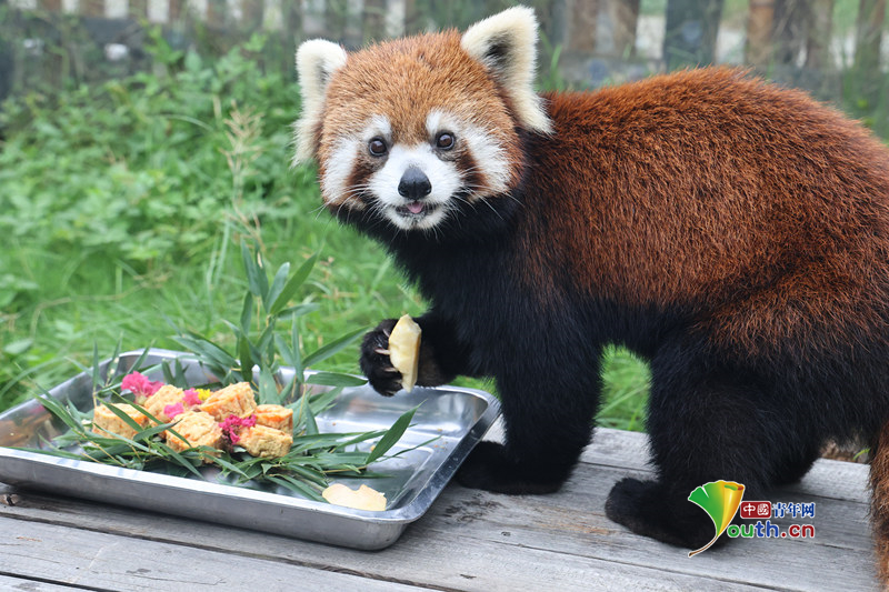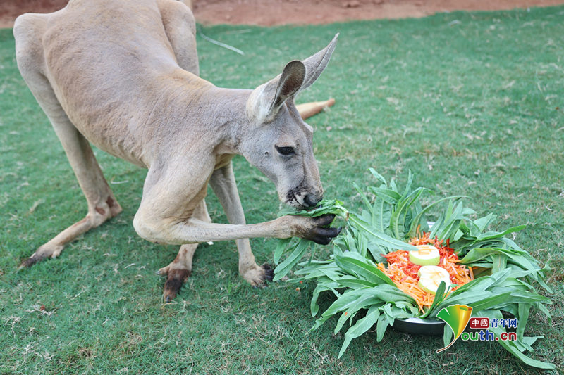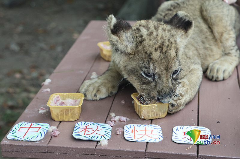 9月29日,江苏省南通市,中秋节将至,动物园根据园区动物食性,定制了特殊的“月饼”及中秋大餐,提供给动物们食用。