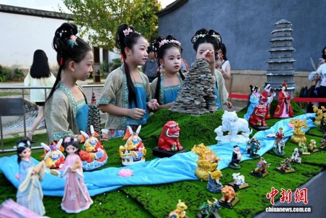 10月5日,“花好月圆夜 共享邻里情”中秋民俗活动在福州市仓山区梁厝特色历史文化街区举办。活动现场文艺表演、猜灯谜、摆塔、月饼分享、拜月仪式等环节轮番上演,为市民、游客带来了一场沉浸式的中秋文化盛宴。图为小朋友体验福州中秋“摆塔”习俗。中新社记者 吕明 摄