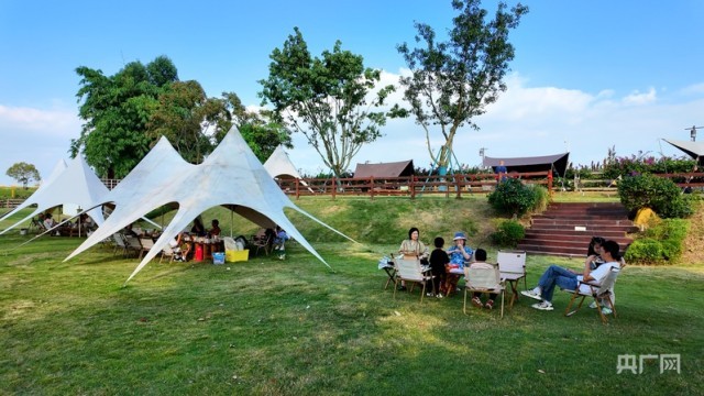 多元体验让假日消费延伸出更多维度。秋日艳阳下,孩子们在红高粱地中尽情高歌;满天星斗下,非遗传承人挥舞的铁花点亮夜空;星空影院前,游人围坐煮茶观影;露营基地内,烧烤的香气飘满整个田野……这座融合文化体验与田园休闲的园区,正成为人们的假日消费的新选择。园区负责人陈霞介绍,园区内专门设计了甲骨文识字、传统文化研学、高粱采收等亲子项目,让游客在体验中消费,在消费中感受文化。
