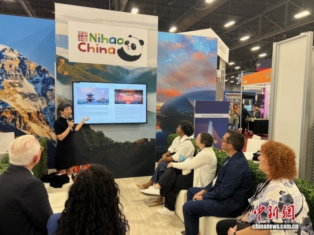 当地时间10月8日,2025年美国会议奖励旅游展(IMEX America)继续在拉斯维加斯举行。这是全球会议及奖励旅游领域最具影响力的展会之一。中国展台举办“中华一刻”——中国非物质文化遗产体验等丰富多彩的活动,吸引众多与会者感受中华文化魅力。图为国际会奖旅游买家等参加中国展台的文旅推介会。