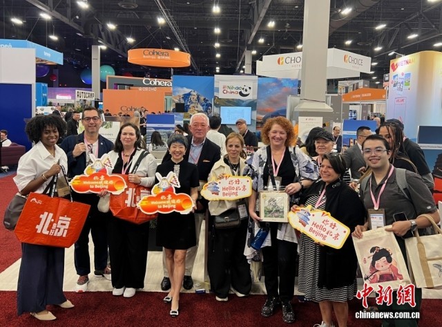 当地时间10月8日,2025年美国会议奖励旅游展(IMEX America)继续在拉斯维加斯举行。这是全球会议及奖励旅游领域最具影响力的展会之一。中国展台举办“中华一刻”——中国非物质文化遗产体验等丰富多彩的活动,吸引众多与会者感受中华文化魅力。图为国际会奖旅游买家等参加中国展台活动时合影。