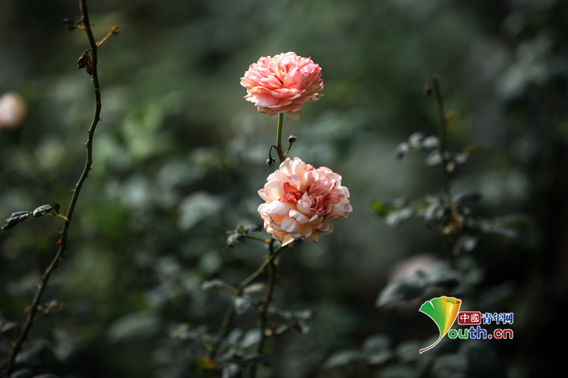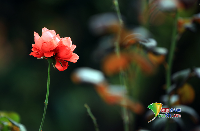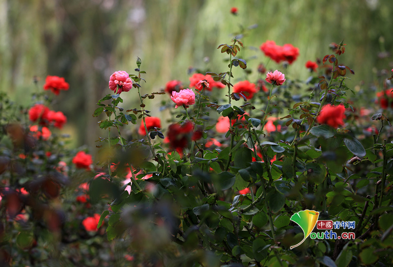 江苏淮安:古黄河畔月季花盛开随风摇曳