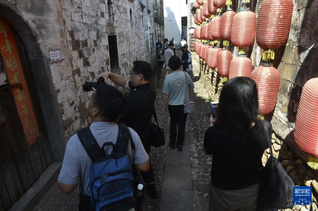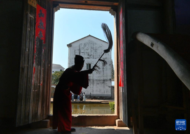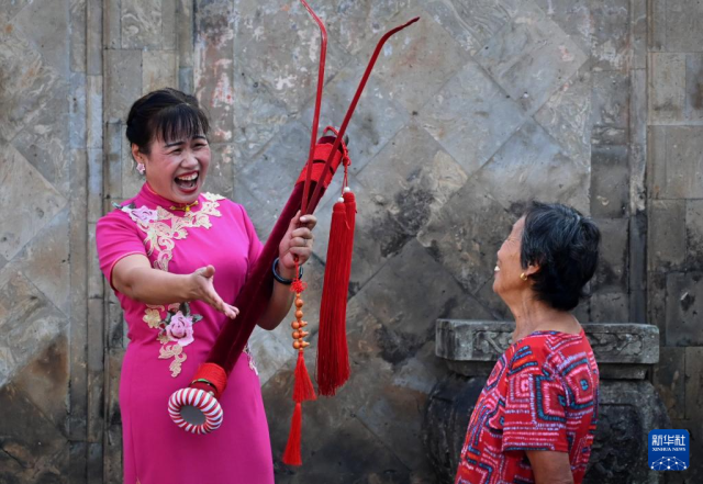 10月12日,民间艺人在寺平村内为观众表演国家级非遗项目“金华道情”。