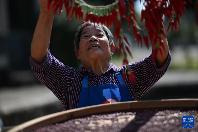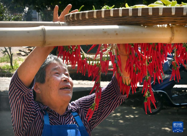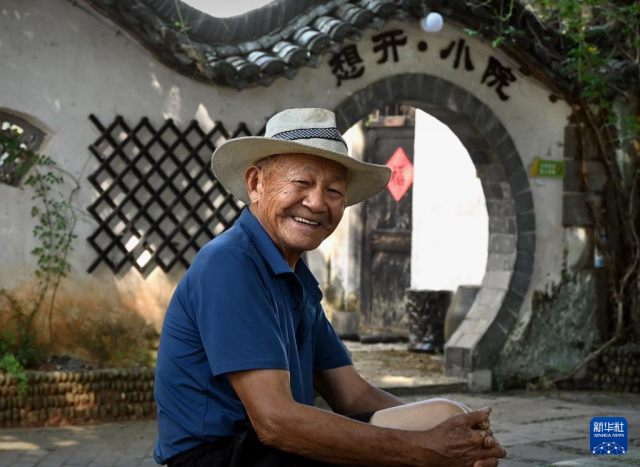 10月12日,一名老人在寺平村的农家小院外歇息。