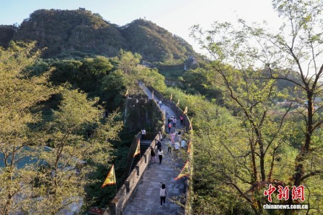 10月13日,由辽宁省委宣传部主办的“最美331 起点在丹东——边境外宣媒体采访活动”在丹东进行中。国道G331丹东市境内路线沿途有虎山长城、河口景区、天桥沟、青山沟等知名景区。图为游客游览辽宁丹东虎山长城。中新社记者 于海洋 摄