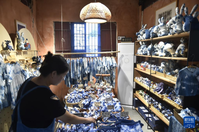 10月14日,李祖村一家店铺的工作人员在整理货品。
