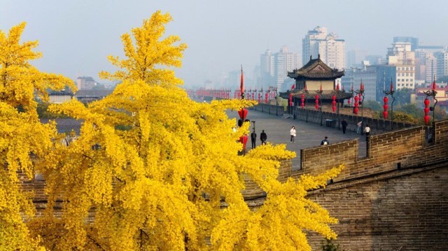 当巍峨古城遇上斑斓秋色