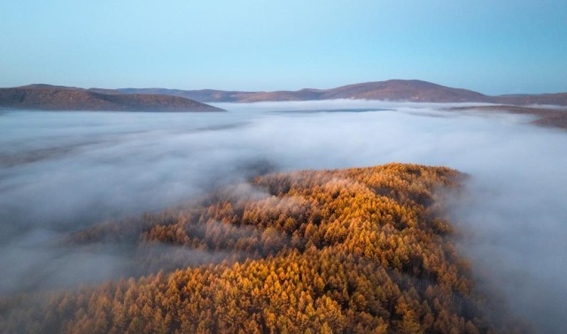 这是2025年9月29日拍摄的内蒙古阿尔山国家森林公园景色(无人机照片)。新华社记者 贝赫 摄