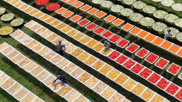 2024年8月26日,江西省宜春市铜鼓县温泉镇禄田村村民在院落“晒秋”。新华社发(周亮 摄)