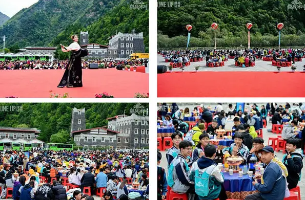 徒步归来,万人藏式土火锅宴在景区入口处暖心开启。铜锅沸腾,歌舞欢腾,游客围坐分享旅途故事,品味地道藏餐。精心设计的开餐仪式与特色表演,不仅暖了胃,更暖了心,让民族风情在烟火气中自然流淌。