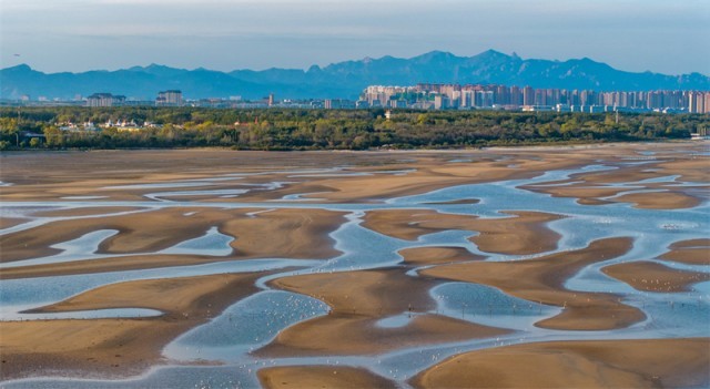 10月18日,大量海鸟在秦皇岛北戴河大潮坪停歇。