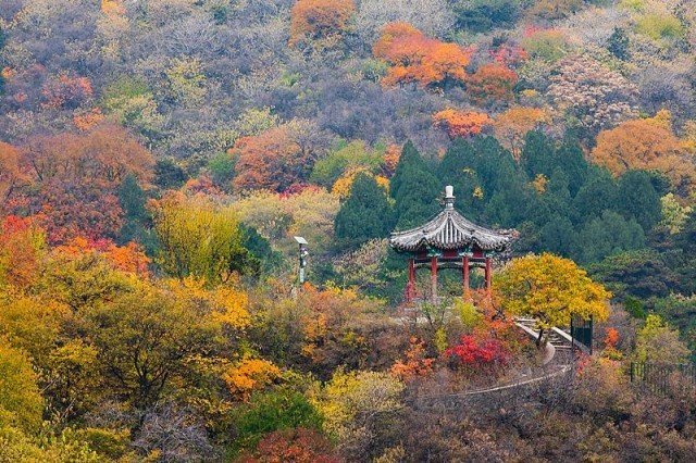香山的红叶以黄栌为主,漫山遍野的黄栌树叶在秋天红得像火焰一样,形成“漫山红遍,层林尽染”的壮观景象。其黄栌林的规模、与古建筑结合的氛围,依然是华北地区最标志性的秋景。