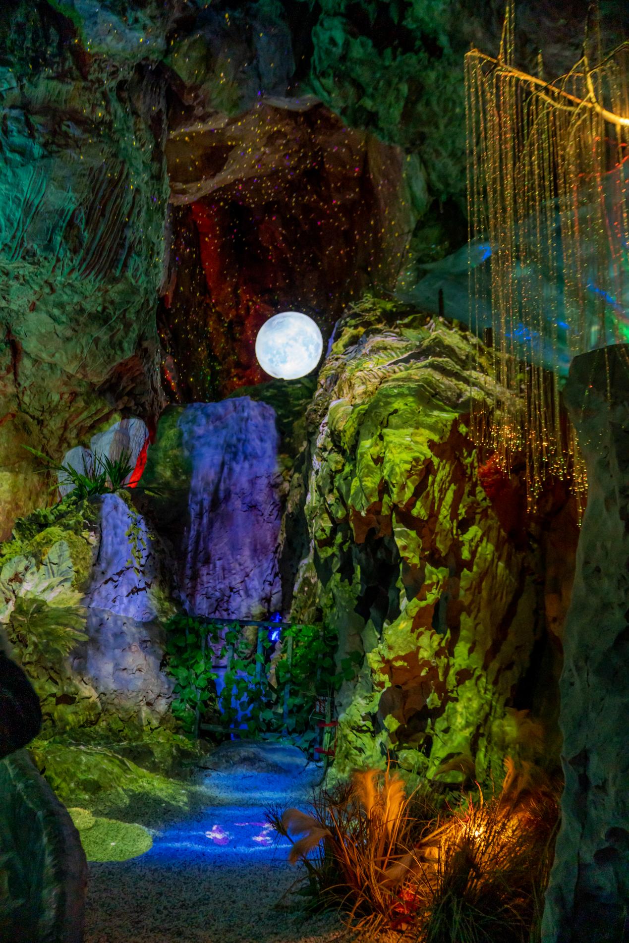 洞中有华丽的演出剧场,近半个小时的歌舞表演,让我们对金梭岛居民的生活和爱情有进一步了解,正如在白族文化中,对女士称呼为“金花”,男士称呼为“阿鹏”。1959年电影《五朵金花》,是一部关于云南大理风光及白族青年幸福相爱的经典,可以说影响了好几代人,我也是最早从这部电影向往大理的。