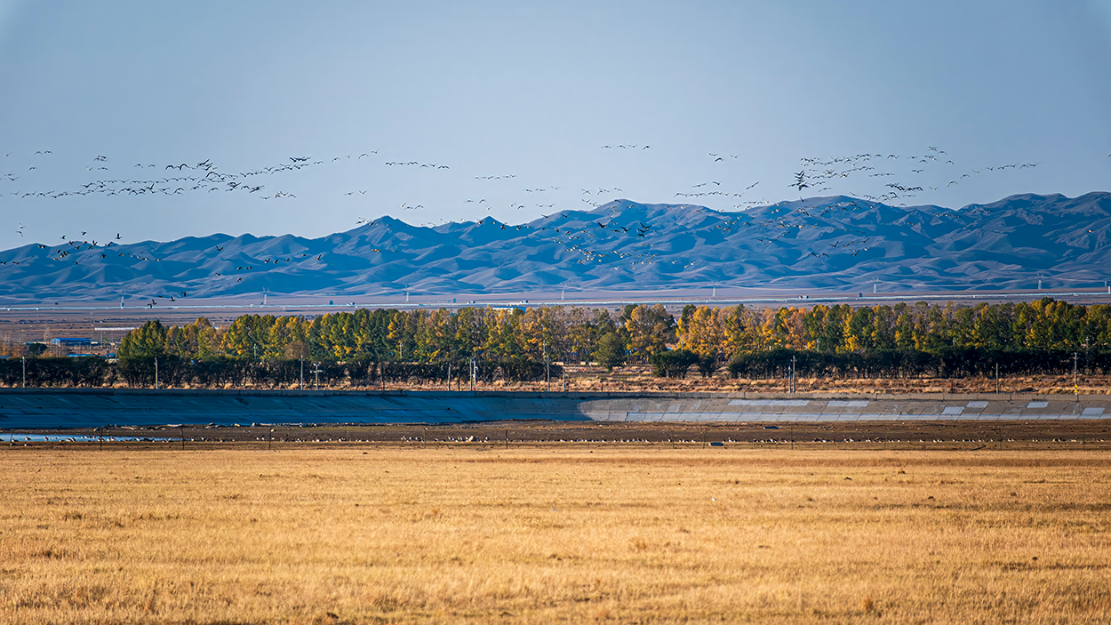哈密市巴里坤高家湖湿地金黄的芦苇荡中,一群候鸟翩跹起舞,摄影师们迅速按下快门,捕捉这生态之美。9月下旬,“瞰见哈密十年”摄影文化周暨2025“星空密语”文化季活动走进巴里坤高家湖湿地,来自全国的媒体摄影师捕捉候鸟翩跹的动人瞬间。