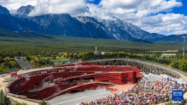 10月26日在丽江市玉龙雪山景区拍摄的《印象丽江》演出现场。
