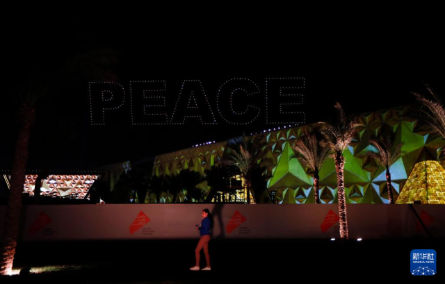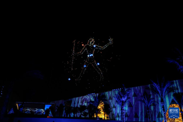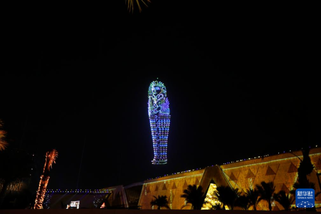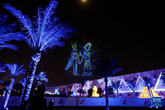 这是11月1日在埃及吉萨拍摄的开馆仪式上的无人机表演和灯光秀。新华社发(艾哈迈德·戈马摄)
