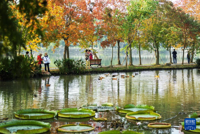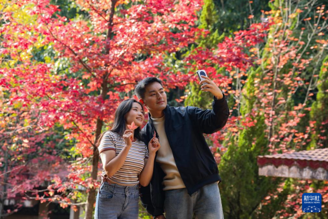 11月1日,游客在云南省昆明黑龙潭公园内拍照打卡。