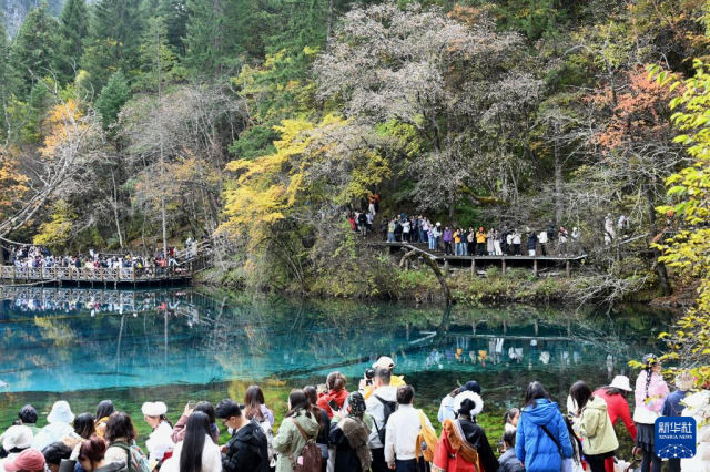 11月1日,在四川省阿坝藏族羌族自治州九寨沟县,游客在九寨沟风景区游玩。