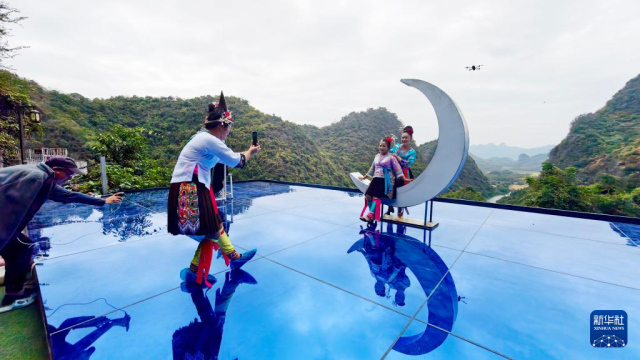 11月1日,在广西柳州市融安县大良镇石门仙湖,游客在景区内游玩。