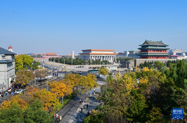 11月3日拍摄的北京天安门广场建筑群及周边的秋色。