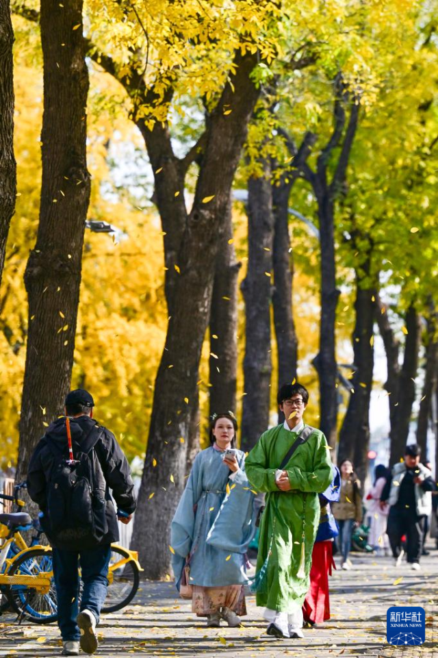 正值深秋,北京街头秋色斑斓,景色怡人。